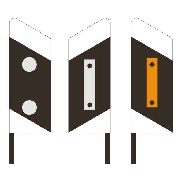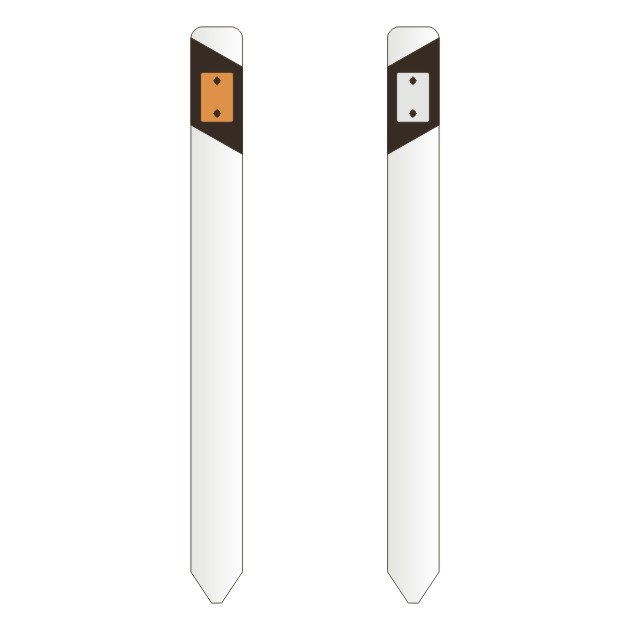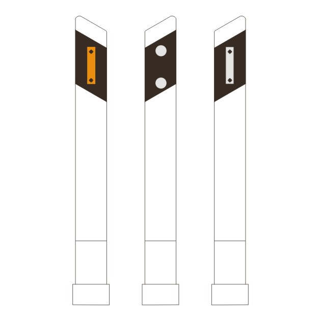 Fabricados em P.E. composto branco, resistente a U.V. com uma faixa moldada a preto em P.P., com refletor de uma face ou dupla face. Inclui ainda ferro galvanizado para as aplicações. Para ser aplicação em guardas de segurança ou New Jersey