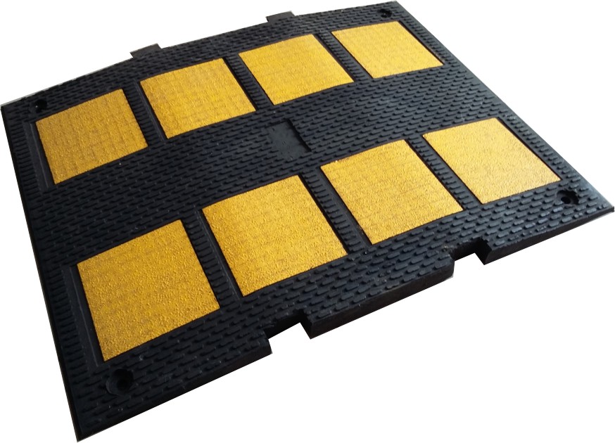 Redutor de velocidade fabricados em borracha de alta resistência. Sistema de fixação ao solo através de parafusos de expansão Medidas 60x50x3cm