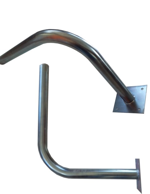 Suporte de parede 90º, em tubo redondo zincado de 50mm de diâmetro tamponado, aplicação de sinais de trânsito ou espelhos à parede Base para aplicar à parede de 15x15cm com 4 furos aos cantos Medida de 50x60cm