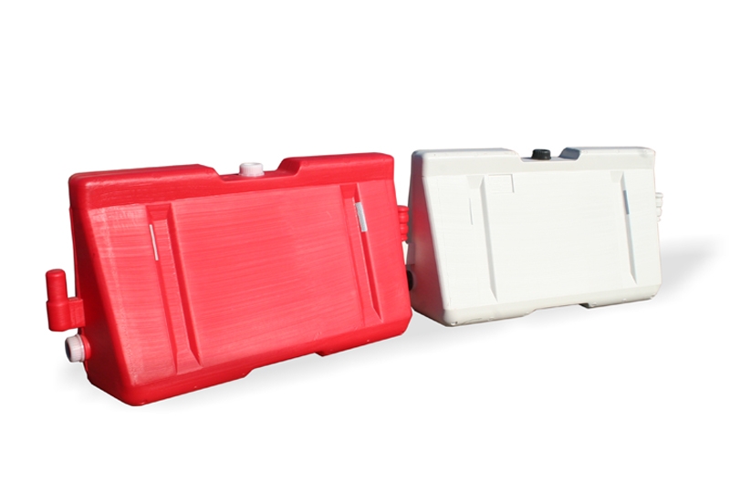Separador de via em plástico vermelho ou branco, com tampa para colocação de água e tampa de esgoto Medidas de 120x60x40cm