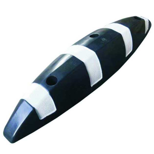 Material em borracha reciclada de cor preto. Com duas faixas refletoras cor branca ou amarela. Parafusos incluidos